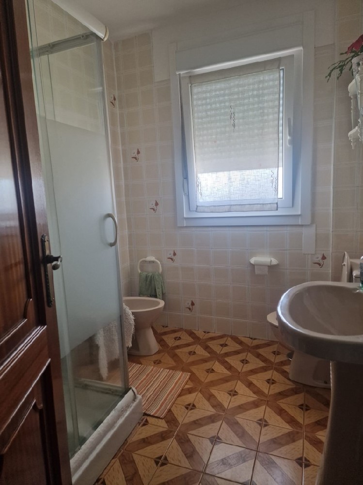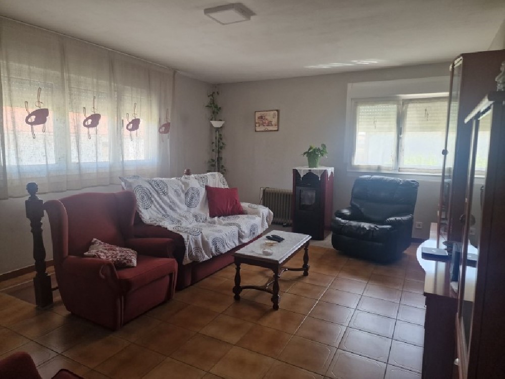 En la planta alta, con acceso por escaleras exteriores o escaleras interiores, se encuentran 125 m2 a vivienda. Esta planta se divide en un salón con caldera de pellets, la cocina, 4 dormitorios y dos baños.