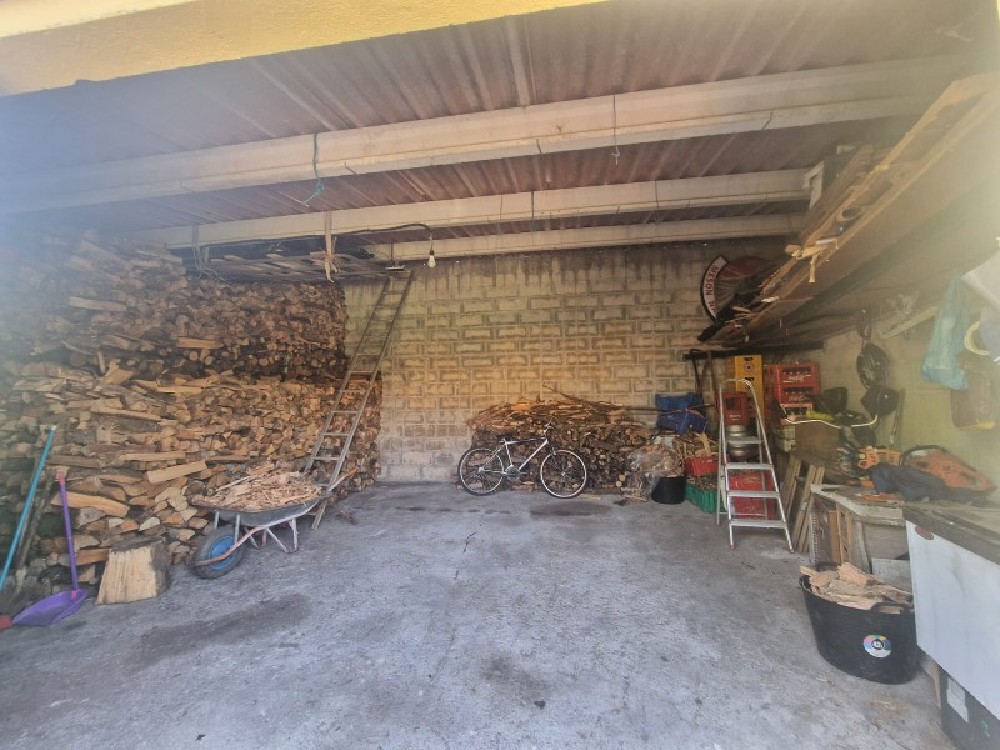 En la parte posterior, cuenta con un pequeño terreno, a patio y huerta, y una conctrucción de 61 m2 a garaje y alpendre con una lareira.